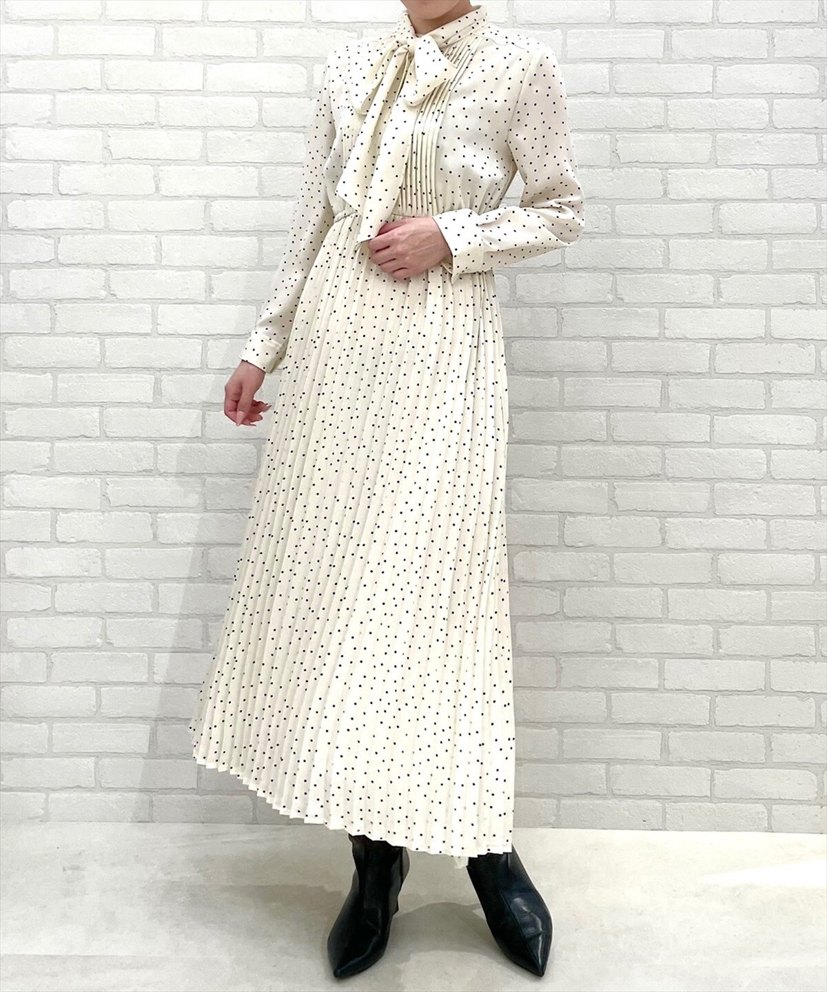 ボウタイ ワンピース ブランド-少女のように可憐な印象のラッフルフリルつきワンピース。 小花柄ブラウスを重ねているようなデザインで、トップスコーデが即完成します。 きちんと感をプラスするボウタイディテールで大人の要素も。 ロングブーツとも好相性の軽やかな丈感です。ボウタイブラウスの上品コーデおすすめ12選|年秋冬のトレンドをチェック 注目ブランドの秋映え服をゲットして♡ 3ドット柄ボウタイブラウス×黒ワンピース